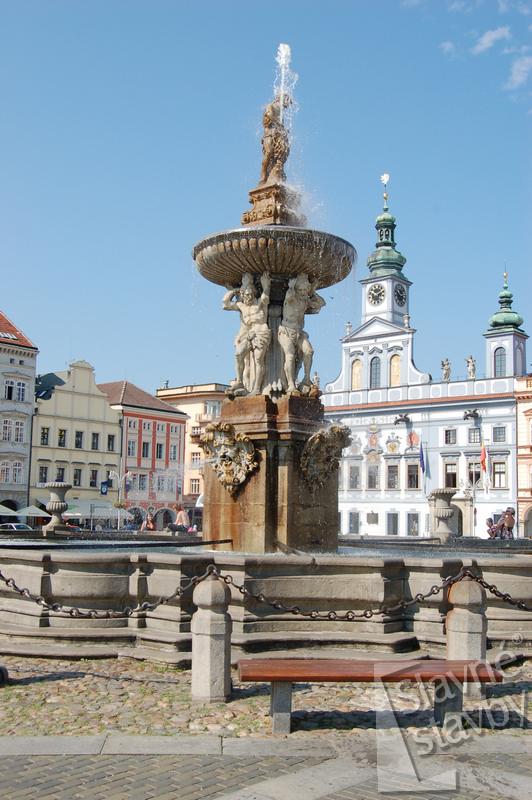 Samsonova kašna dominuje náměstí přemysla otakara ii.